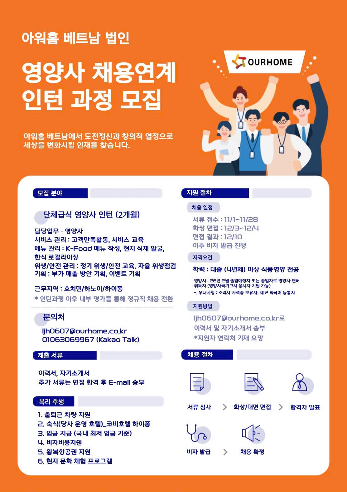 [취업] 아워홈 베트남 법인 영양사 채용연계 인턴 과정 모집