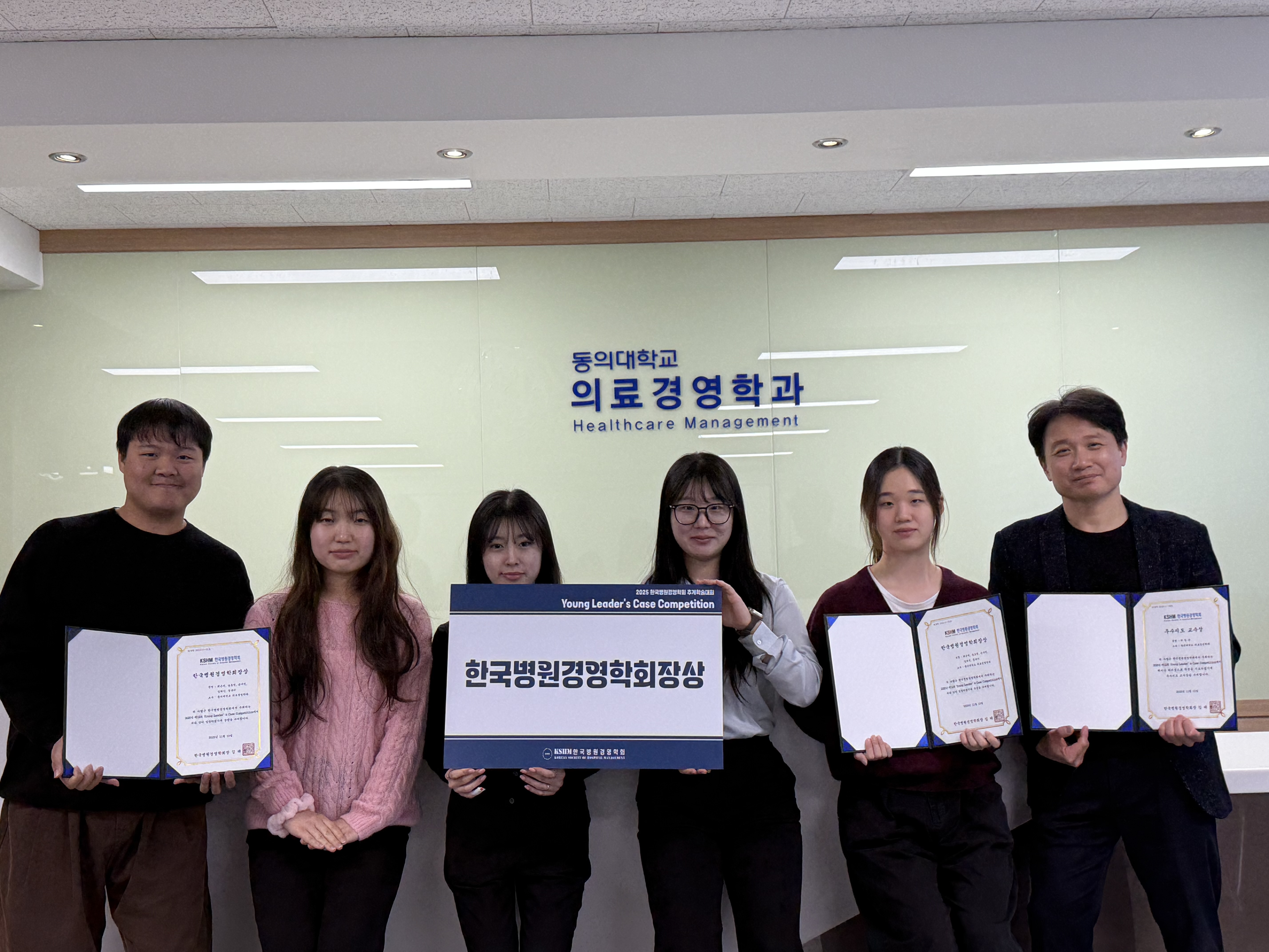 동의대학교 의료경영학과 학부생 5명으로 구성된 ‘HI-Miner 3.0’ 팀이 지난 10월 24일 연세대학교 보건대학원에서 열린 2025년 한국병원경영학회 추계 학술대회 – 제12회 Young Leader’s Case Competition에서 대회 최고상인 ‘한국병원경영학회장상’을 수상했다.