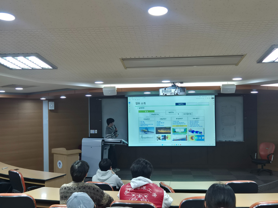 채건욱 졸업생은 우리 학과 석사과정을 졸업한 뒤 현재 K조선 구조설계 파트에서 근무하고 있습니다. 세미나에서는 K조선 소개, 부서별 업무 내용, 그리고 실제 산업 현장에서 겪을 수 있는 어려움과 해결 방법 등 후배들에게 도움이 될 수 있는 다양한 조언과 격려를 아낌없이 전해 주었습니다.