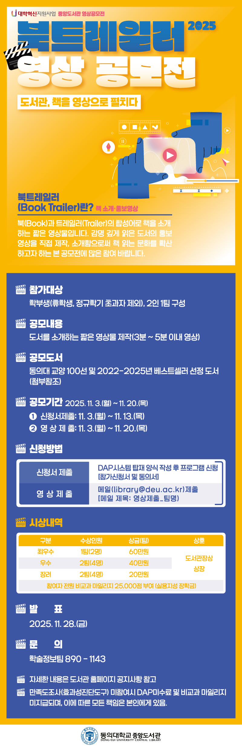 [대학혁신지원사업] 중앙도서관 '영상 공모전' 프로그램 모집 안내