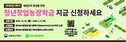[농어촌희망재단 2026년 1학기 청년창업농장학금 신청 관련 안내]